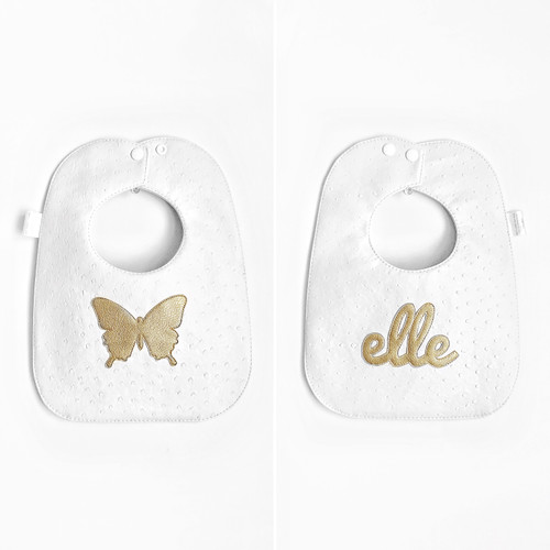 HOT BUTTERFLY APPLIQUÉ - Custom Vinyl Reversible "Wipe Clean" Bib - Crocodile Embossed