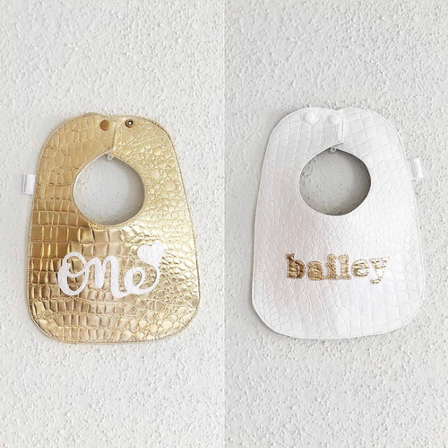 ONE HEART APPLIQUÉ - Custom Vinyl Reversible "Wipe Clean" Bib - Crocodile Embossed